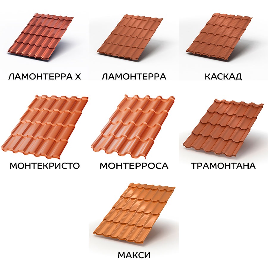 Для крыш со сложной геометрией отлично подходит модульная металлочерепица Вилейская волна. Для кровли большой площади — Монтеррей или СуперМонтеррей. Трамонтана успешно используется в районах со сложными климатическими условиями. Каждый тип кровельных материалов обладает преимуществами, которые позволяют сделать крышу прочной, красивой и долговечной. Важен не только шаг волны металлочерепицы для крыши, но и оформление ступенек, надежность замка, особенности профиля. Наиболее распространенные типы: